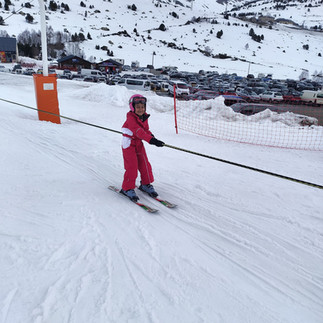 C'était le matin quand ils ont appris à skier sur la piste baby avec la corde